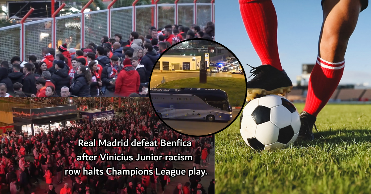 Hundreds of football fans flocked to Benfica’s stadium in Lisbon on Tuesday for the Champions League knockout phase play-off first leg between Benfica and Real Madrid – before a ‘racism row’ stopped the match midway.