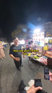 What started as a simple order of mutton skewers turned into an unexpectedly wholesome moment between strangers — complete with cultural trivia, surprisingly fluent English, and a new friendship on Weixin.