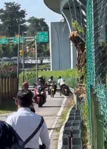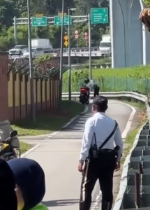 The interesting aspect of the moment is the cause of panic on the side of the rider. The roadblock did not get established to arrest criminals or impose fines. Rather, it was a given out event where policemen were distributing minor gifts to riders as a Hari Raya gift.
