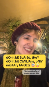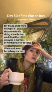 “Hi friends, it’s day 11 of the imperialist war on Iran and I’m still alive.”