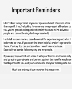 In the same post, Sara made it clear that she does not claim to represent all Iranians. She wrote that Iran is a diverse country and that no one person can speak for everyone.