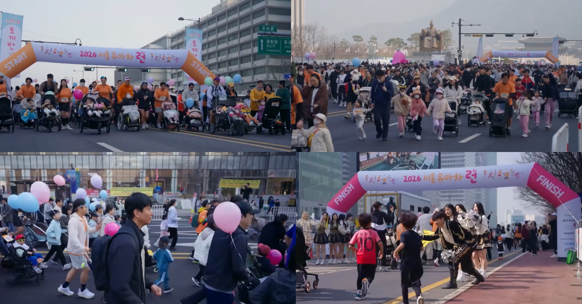 Families gathered at Seoul’s Gwanghwamun Square on Saturday for the Seoul Stroller Run, a family-focused marathon where parents ran while pushing their children in strollers, turning the city centre into a lively, communal track.