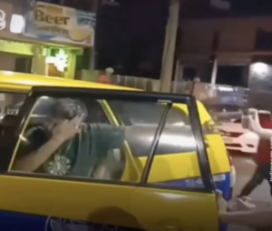 A video circulating on social media shows Raj Jasuja being dragged out of a car. He is then kicked and hit with slippers by multiple people. Although some onlookers nearby saw the incident, no one intervened immediately.