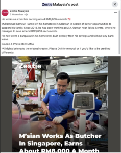 Samzuri currently earns about 2,500 Singapore dollars a month, which is about RM8,000 in Malaysian currency. Through strict accounting and controlled spending, he was able to save about RM3,000 (S$950) per month.