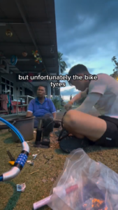 For nearly two hours, Isa stayed with him. Despite their best efforts, the tyre couldn’t be saved.