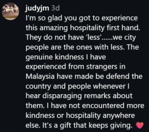 Another added: “That’s Malaysia for you. Glad you got to experience our Malaysian heart and kindness.”