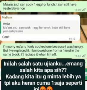 A simple request to cook an egg in Singapore has suddenly sparked a major social debate. A WhatsApp conversation posted on a Facebook group has shaken many. There, a domestic worker politely asked her employer for permission to cook an egg for lunch. She also mentioned eating it with the previous day’s rice.