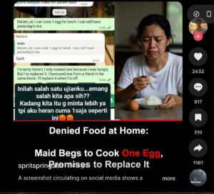 There was a huge backlash on social media after this post. Many commented that denying a domestic worker an egg is inhumane. Some questioned how a domestic worker can work properly if they are not given enough food.