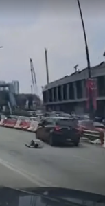 The clip, which lasts around 30 seconds, has since sparked discussion online, with some social media users questioning whether the man had deliberately stepped into the path of the vehicle.