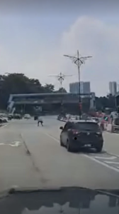 Short dashcam footage shared online shows the man, who appeared to be carrying a briefcase, trying to make his way across the multi-lane road despite a pedestrian bridge being located just a short distance away.