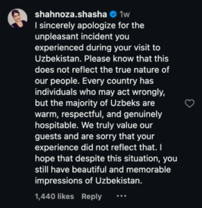 After the incident, a wave of sympathy was seen on social media. Many Uzbek citizens expressed their regret and said that such an incident does not reflect the true hospitality of their country. They want to convey that most Uzbek people are hospitable and know how to show respect.