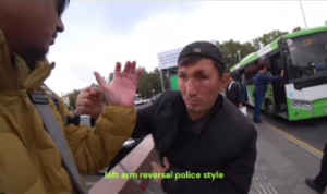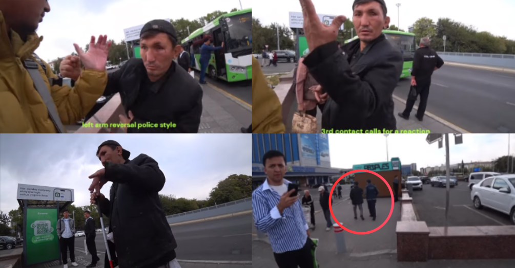 The incident took place outside a busy train station in Tashkent. Although the situation seemed normal at first, within a few moments, a man began behaving abnormally. He then walked towards the tourist and his mother and showed an aggressive posture.