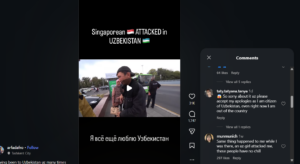 A Singaporean tourist has come across an unexpected incident while traveling in Uzbekistan. In a video circulating on social media, a man suddenly lunged at the tourist and his mother outside a train station in the capital Tashkent. The tourist said that the man had chased them into the parking lot before the video.