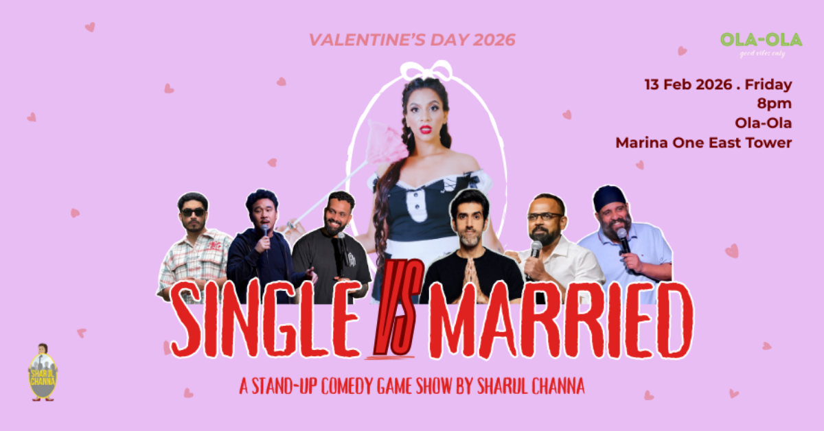 Instead, head down to Marina One for a night of brutal honesty, dating debates and audience-decided bragging rights as Sharul Channa presents Single VS Married, a live stand-up comedy game show.