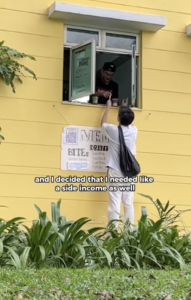 Currently, he serves popular drinks like Strawberry Matcha Latte and Classic Ice White to customers at his outlet called ‘Corner Pen’.