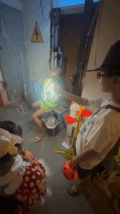 One resident even went all out, acting as a “scare victim” who pretended to be electrocuted when touched — a performance that drew laughter and applause.
