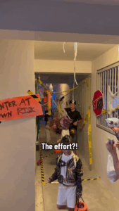 The clip, shared by @/therealtrafflock on Instagram, captures residents coming together to deck out their corridor with eerie lights, cobwebs, caution tape, and spooky props. The video was captioned, ‘Childhood core memories secured. I love the enthusiasm of this community!’ and posted on 25 October.