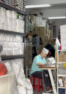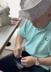 Every morning, Haji Wahab enters the shop and first sweeps the floor. Then he patiently cuts the cloth and sits at the sewing machine. He makes each songkok with great care. The folds of the black cloth, the stitching lines—everything has a perfect calculation.