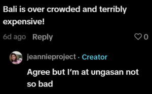 Concerns about Bali being overcrowded and increasingly expensive were also raised. The creator acknowledged this, but said her experience in Ungasan has been more manageable compared to tourist-heavy areas.