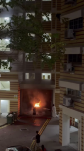 A major accident was averted by the quick action of ordinary residents after a small fire broke out on the ground floor of a residential building in Singapore. Witnesses said that no one understood the situation at first when the fire broke out at night. However, a group of young people came forward and started extinguishing the fire.