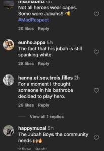 The incident was widely praised on social media. Many believe that calm, quick and courageous action is the hallmark of a true community. Some specifically mentioned the role of the ‘Jubah Boys’ and a man in shorts.