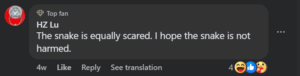 Others commented that the driver was lucky the snake did not enter the car through the open gap. The clip also reminded many viewers about the unpredictable dangers that can appear during normal daily activities.