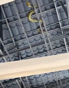 Guests attending an event were suddenly terrified when they saw something resembling a snake hanging from the ceiling. At first glance, many thought they were real snakes. As a result, the venue immediately started to stir. However, it was later revealed that they were actually fake snakes.