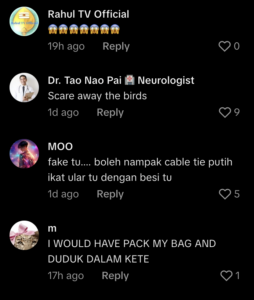 @themalaymail Turns out they’re fake snakes meant to scare birds and monkeys away. Still gave everyone a shock 😟