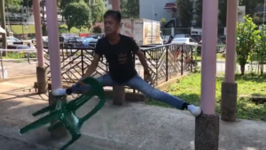 A video uploaded originally on 6 January this year has been making rounds on social media in the past week. The TikTok video, by user @sohbenghock, shows an uncle in Singapore doing karate kicks on a basket atop an unoccupied food cart. No bystanders can be observed in the video.
