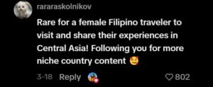 Social media users are very impressed and inspired by the traveler. They feel excited because she shares rare experiences from Central Asia. Many people want to follow her for more unique adventures.