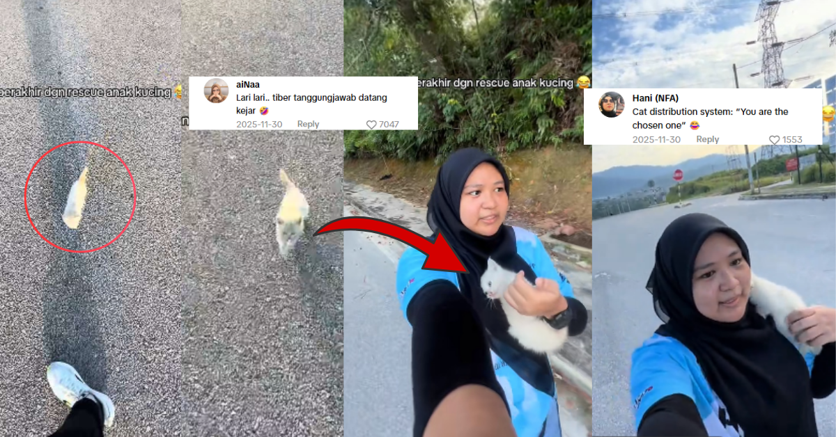 It remained quiet in her hands and made no attempt to move out. In a video clip, she grinned and told her that the morning run had become a rescue operation for a stray kitten.