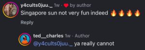 One echoed Ted’s own line that “Singapore sun not very fun indeed,” agreeing that early mornings are the only safe window for any outdoor cleanup.