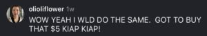Some said they now “got to buy that $5 kiap kiap,” while others offered to join him as a “kiap-kiap buddy.”