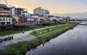 For a more authentic look at Kyoto, step into the city’s small, rambling shotengai (local shopping arcades) and izakaya—where the beauty and spiritual recipes of everyday life are hidden. People sit along the banks of the Kamogawa River, picnicking, enjoying music, and embracing the riverside scenery in autumn or spring.