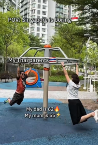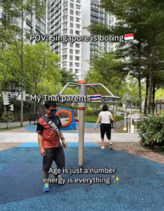 The clip opens with on-screen text: “POV: Singapore is boring.”