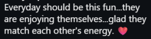 Others highlighted how rare it is to see couples so in sync, suggesting their shared energy says a lot about their relationship.