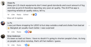 Nong Khaem district recorded a local 102.5 µg/m³. There are Bang Bon and Bang Khae, where it is more than 101. Around 5 am, the smog began to accumulate rapidly and increased the risk of respiratory problems.