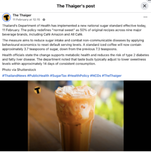 Thailand has redefined the “normal sweetness” of beverages from February 11. From now on, drinks that will be served as “normal sweet” by default will contain only 50 percent more sugar than before. This decision has been made by the Department of Health. According to the government, the main goal of this initiative is to reduce excess sugar intake and reduce the risk of non-communicable diseases.