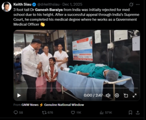 Medical school was not easy for Ganesh. Simple tasks were often difficult because of his height. During anatomy classes, teachers and friends helped him by giving him a front seat. In surgery training, his classmates even lifted him so he could see clearly. These small acts of kindness helped him continue learning without feeling left behind.