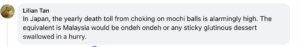 Not only Chinese citizens, but also people from neighboring countries have expressed concern about the incident. Many cited the example of many people dying every year in Japan from choking on sticky food called mochi. In Malaysia, many have warned that sticky or chewy sweets are equally dangerous for children.