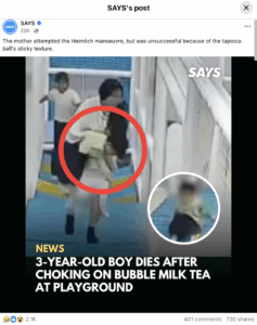 The death has sparked a heated debate on social media. Many believe that the guardian’s negligence in giving a three-year-old child a drink containing tapioca balls was the fault of the guardian.