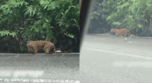 It is possible that the animal was exploring new territory or searching for food. The Malayan tiger is a protected species, and only around 150 are believed to remain in the wild.