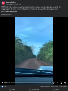 The clip was a viral hit with the locals, particularly those residing around Kampung Rahmat at the Sri Lalang locality. Numerous residents claimed that they have never witnessed such a huge wild beast that would be that close to their houses.