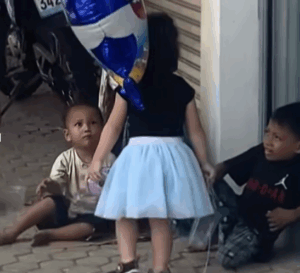 At first, a balloon may seem like an object with little value. But in this video, it becomes something much greater. It becomes a gift of joy, a symbol of care, and a message that someone noticed the family’s existence. This is what makes the moment powerful.