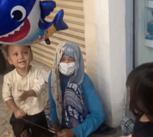 A two-year-old child recently handed a colorful balloon to a homeless family, a simple gesture that has caught many people’s attention online. The video shows the toddler walking up to a family living on the streets and offering them a balloon — and the smiles that follow are deeply moving.