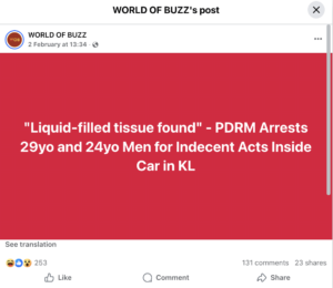 Sentul district police chief ACP Ahmad Sukarno said that at around 2 am, police officers on patrol noticed unusual movements inside the car. During the search, used tissues were found in the back seat of the car, which is believed to be related to the incident. Police confirmed the identities of both men and also checked the car.