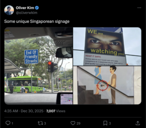 The international school teacher and content creator transforms the moment into a social remark. In a Facebook Reel, he uses language to directly raise awareness of Singapore’s upskirting regulations among his Burmese-speaking audience.