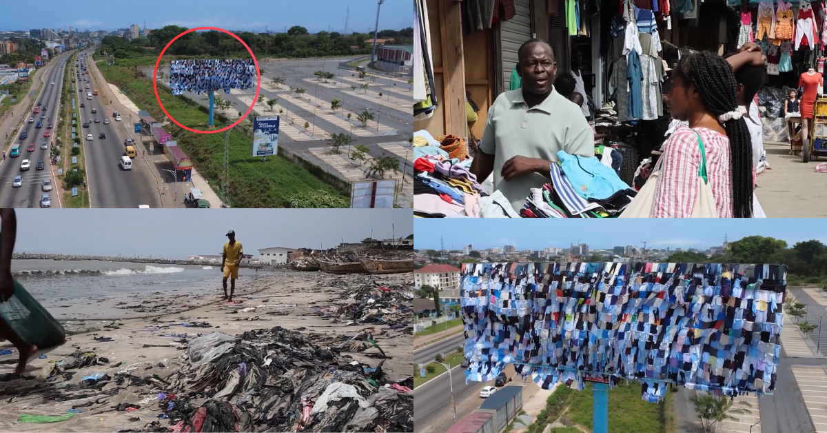 In Accra, billboards are being repurposed to expose the scale of second-hand clothing waste, amid rising concerns that Africa is being used as a dumping ground for discarded textiles from Europe and the United States.