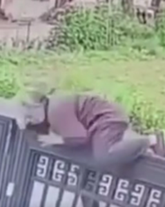 In the footage of the CCTV, the grandmother is evidently holding the gate firmly and lifting her body in steps. She did not rush. Instead, she descended on the opposite side and did not express any fear.