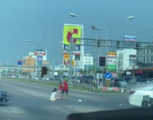 An unusual moment in Chon Buri surprised many drivers and quickly spread across social media. On the afternoon of 04 March, a Thai woman suddenly sat down in the middle of a busy road after a heated argument with her boyfriend. The incident happened at Khiri Intersection, where traffic usually moves constantly during the daytime.